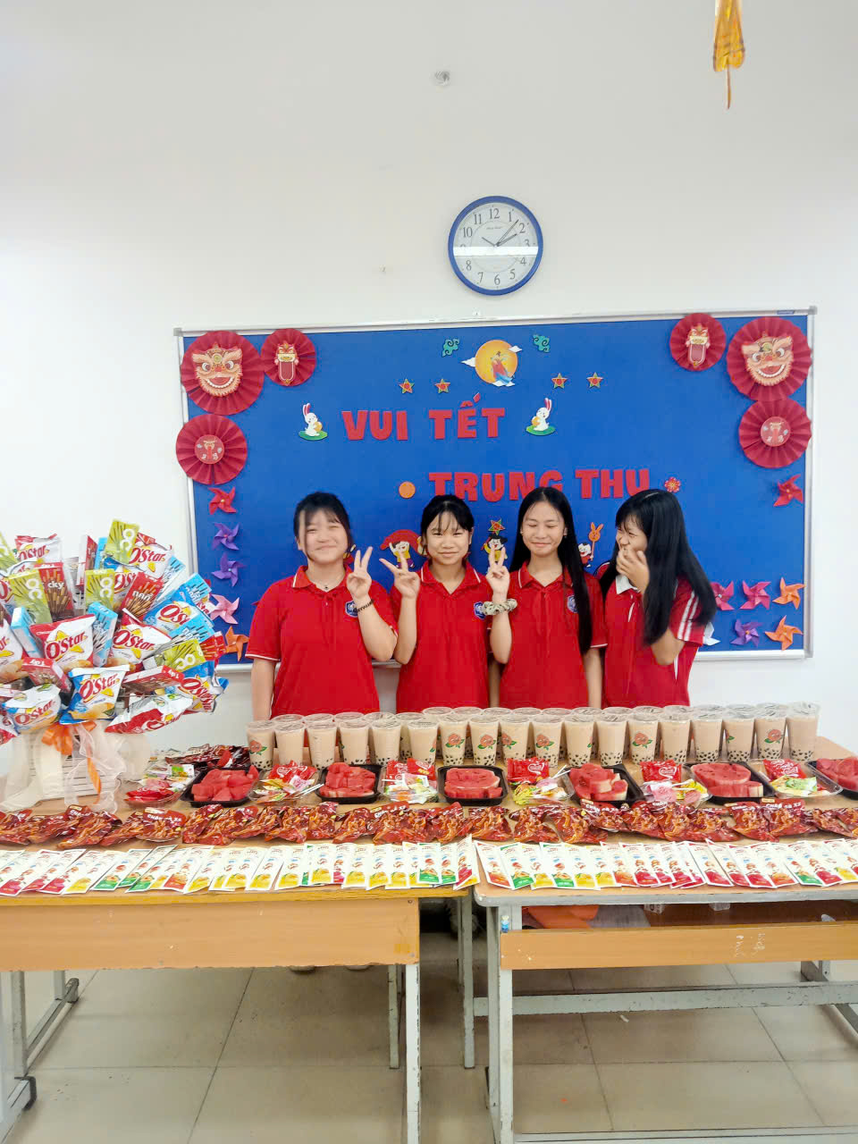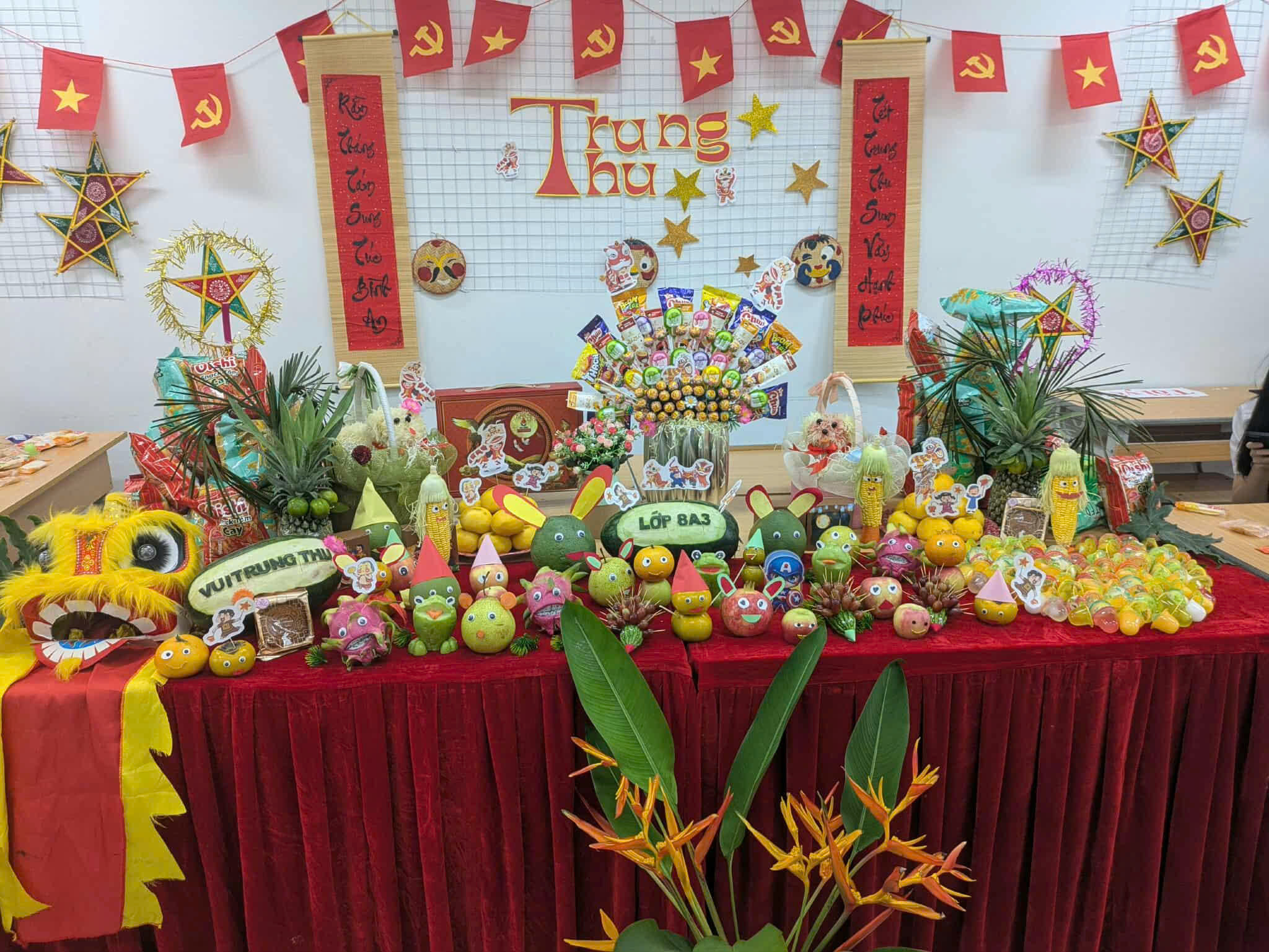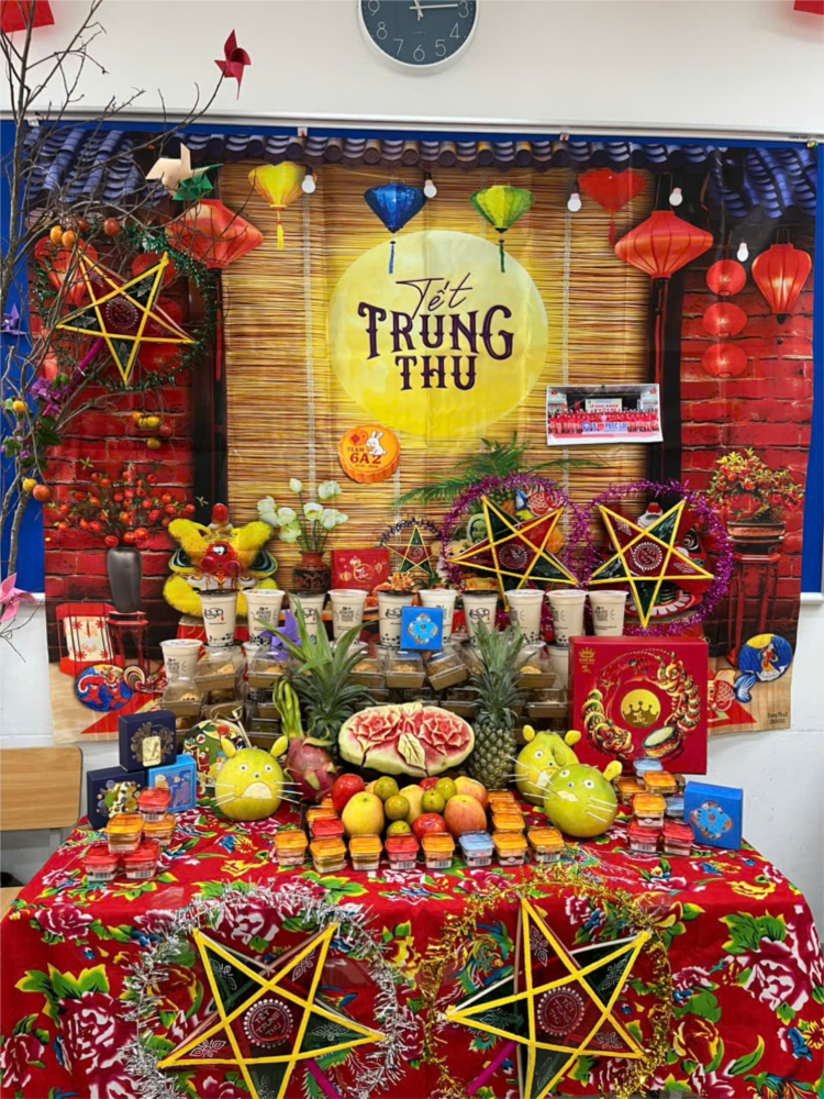💕Các lớp học được trang trí rực rỡ với chong chóng sắc màu, đèn lồng, mâm cỗ Trung thu, bánh nướng – bánh dẻo và những tấm thiệp gửi lời chúc yêu thương. Mỗi góc lớp là một không gian sáng tạo, nơi các em học sinh thể hiện sự khéo léo, tinh thần đoàn kết và niềm vui tuổi học trò.