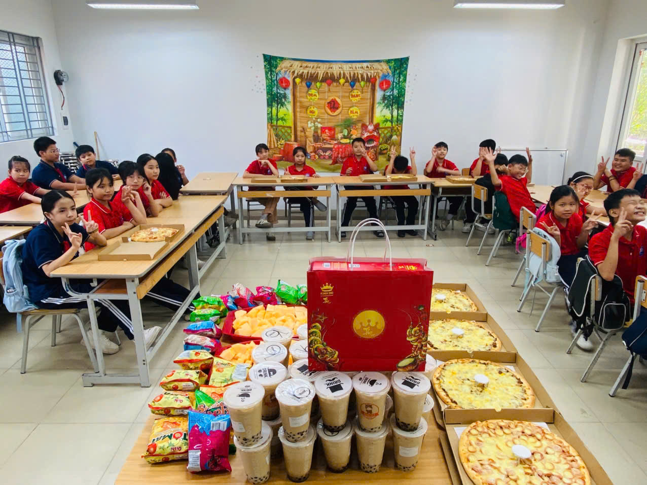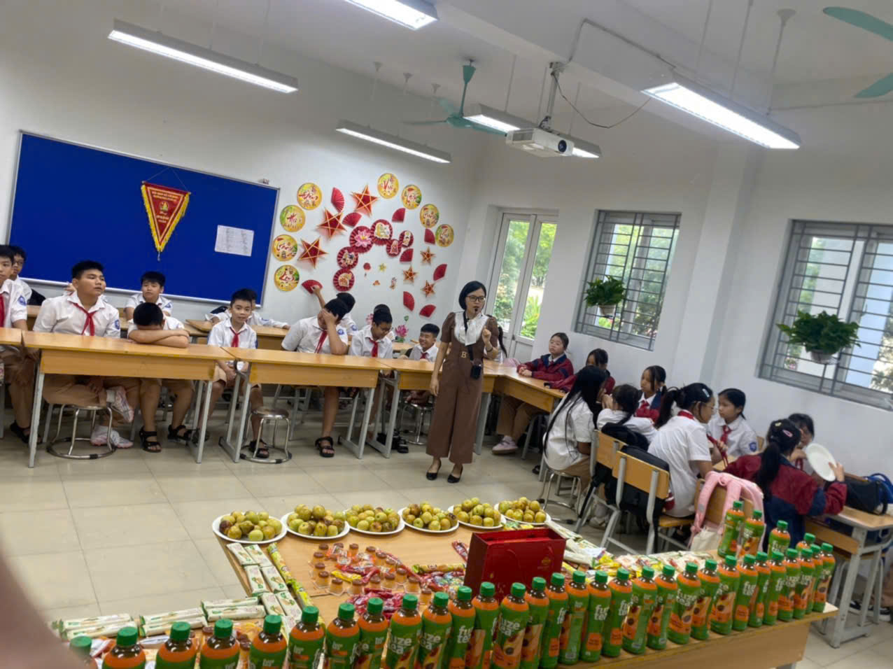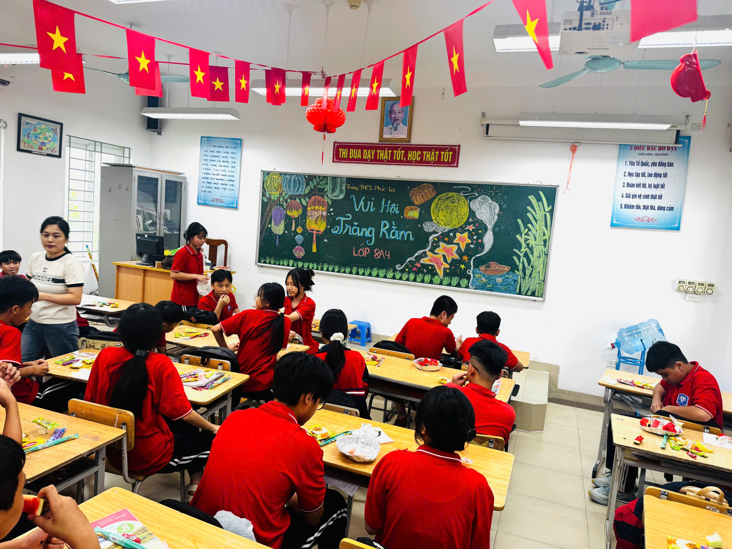 💕Các lớp học được trang trí rực rỡ với chong chóng sắc màu, đèn lồng, mâm cỗ Trung thu, bánh nướng – bánh dẻo và những tấm thiệp gửi lời chúc yêu thương. Mỗi góc lớp là một không gian sáng tạo, nơi các em học sinh thể hiện sự khéo léo, tinh thần đoàn kết và niềm vui tuổi học trò.